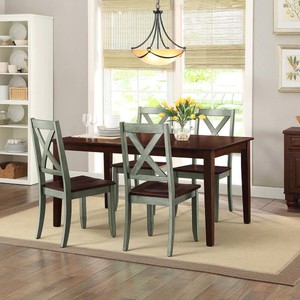 Angeline farmhouse dining table & chairs set 5 piece white solid wood round top country. Sets can include tables in sizes to sit 2 to 24 people, chairs, hutches, buffets and much more. The table and chairs are made from solid birch, mango, and rubberwood in a cream finish for a country cottage aesthetic. It includes cutlery, glassware, serving dishes and other items for practical as well as decorative purposes. They are made usually of oak, and one of the earliest, at penshurst place in kent.
