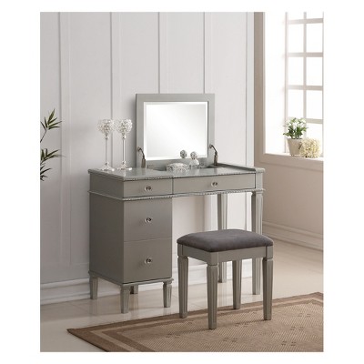 Cyndi Vanity Set Silver By Furniture Of America Furniturepick from smhttp-ssl-18667.nexcesscdn.net Apply makeup comfortably at this vanity table with mirror and matching stool. This vanity set contains a table with a lighted mirror, a stool, a cabinet with 3 drawers, and a smaller cabinet. Checkout the christine makeup dressing table set in silver, black, white and cherry at discounted price. Today these have become most popular furniture among many women and men. The make up table were commonly used by men for grooming. Set is manufactured by towle, which is stamped on each piece. Christine silver makeup vanity table set. A wide variety of vanity table set options are available to you, such as appearance, specific use.